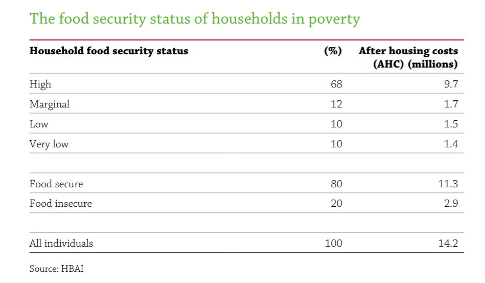 Sometimes people criticise relative poverty measures but this increase in poverty is leading to destitution, not just lower incomes. 20% of people in poverty (26% of kids) have low or very low food security.