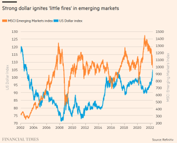 A rapidly appreciating US dollar is kryptonite for emerging markets. YTD the DXY has appreciated 10% against a basket of currencies.