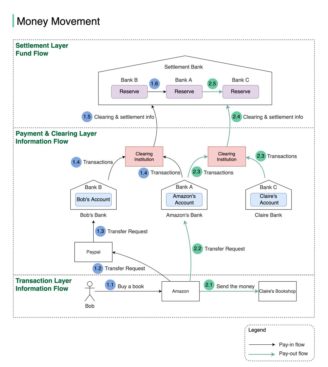 The first two layers are called information flow, and the settlement layer is called fund flow. 3/6