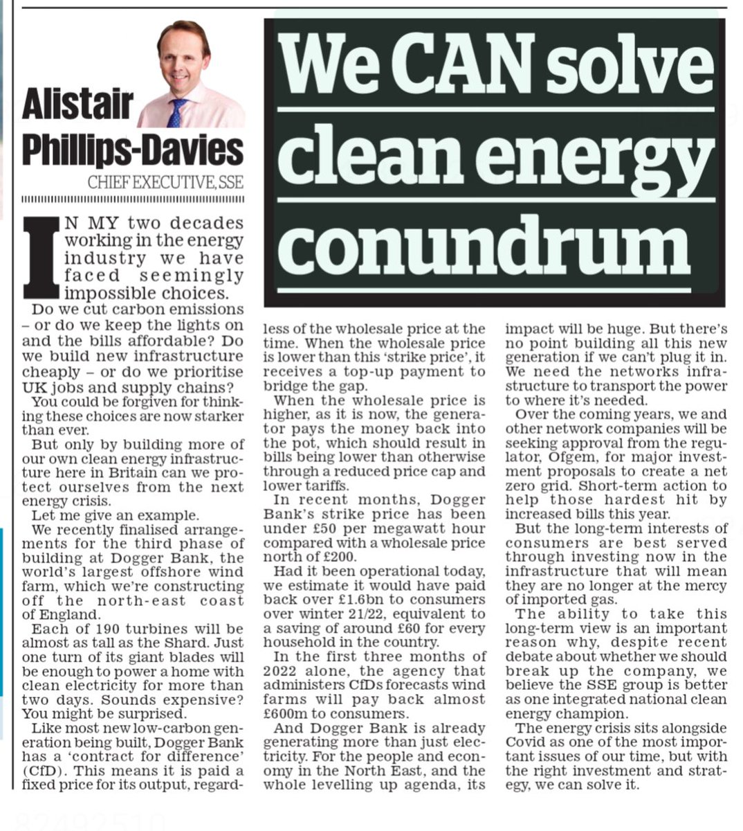As noted by SSE boss Alistair Phillips-Davies in a recent Daily Mail column, we can look forward to more protection from high gas prices once the current tranche of massive under-construction offshore windfarms get completed