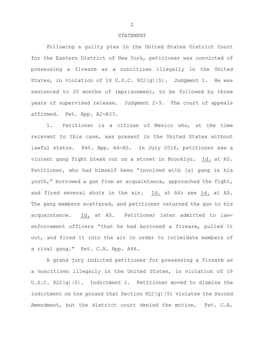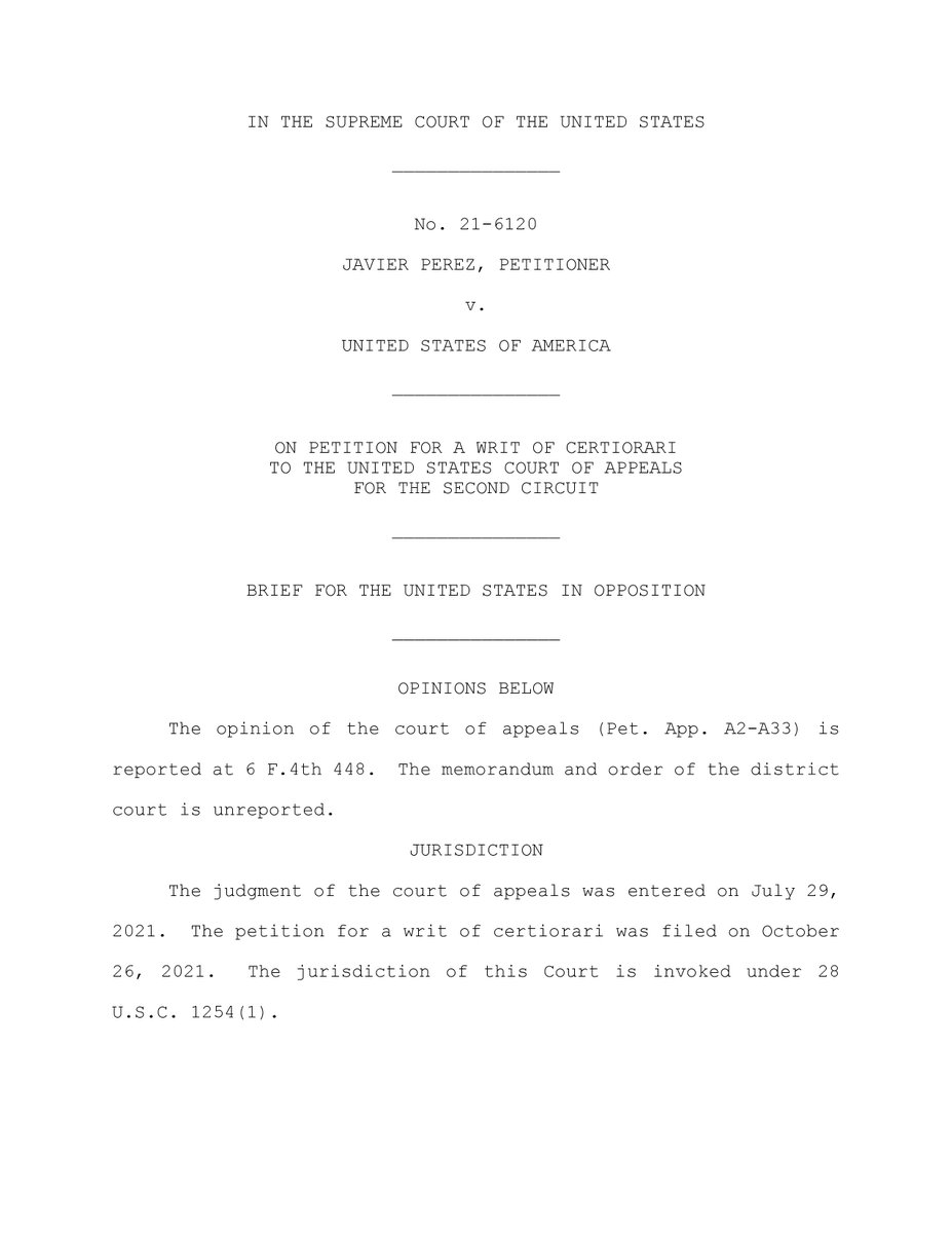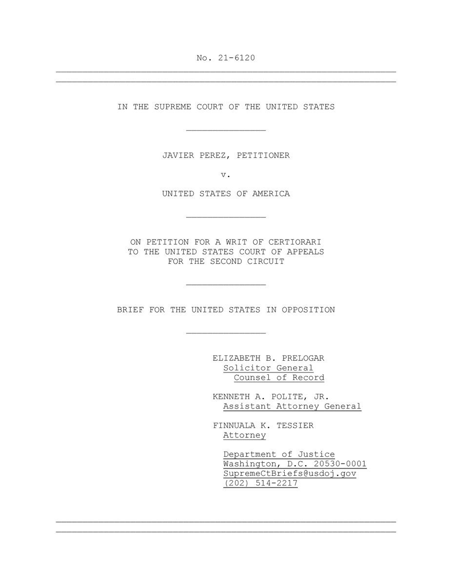 Perez v. United States (#SCOTUS, 21-6120): Biden administration responds to cert petition challenging gun ban for undocumented immigrants, says they “show a willingness to defy our law" and that "the right to keep and bear arms belongs to citizens." supremecourt.gov/DocketPDF/21/2…