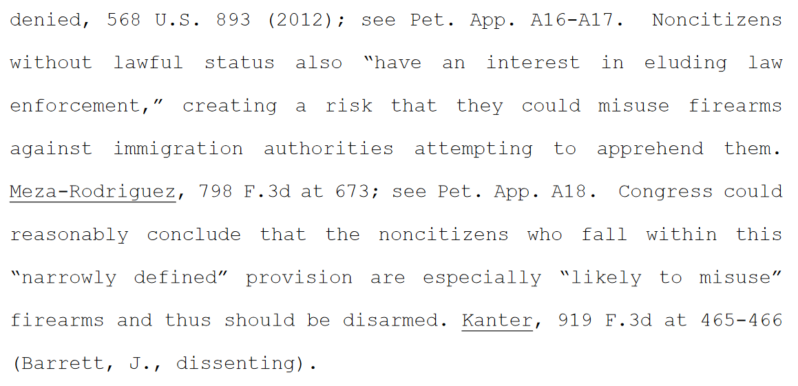 The Biden admin says that "Congress could reasonably conclude that" undocumented immigrants "are especially 'likely to misuse' firearms and thus should be disarmed."