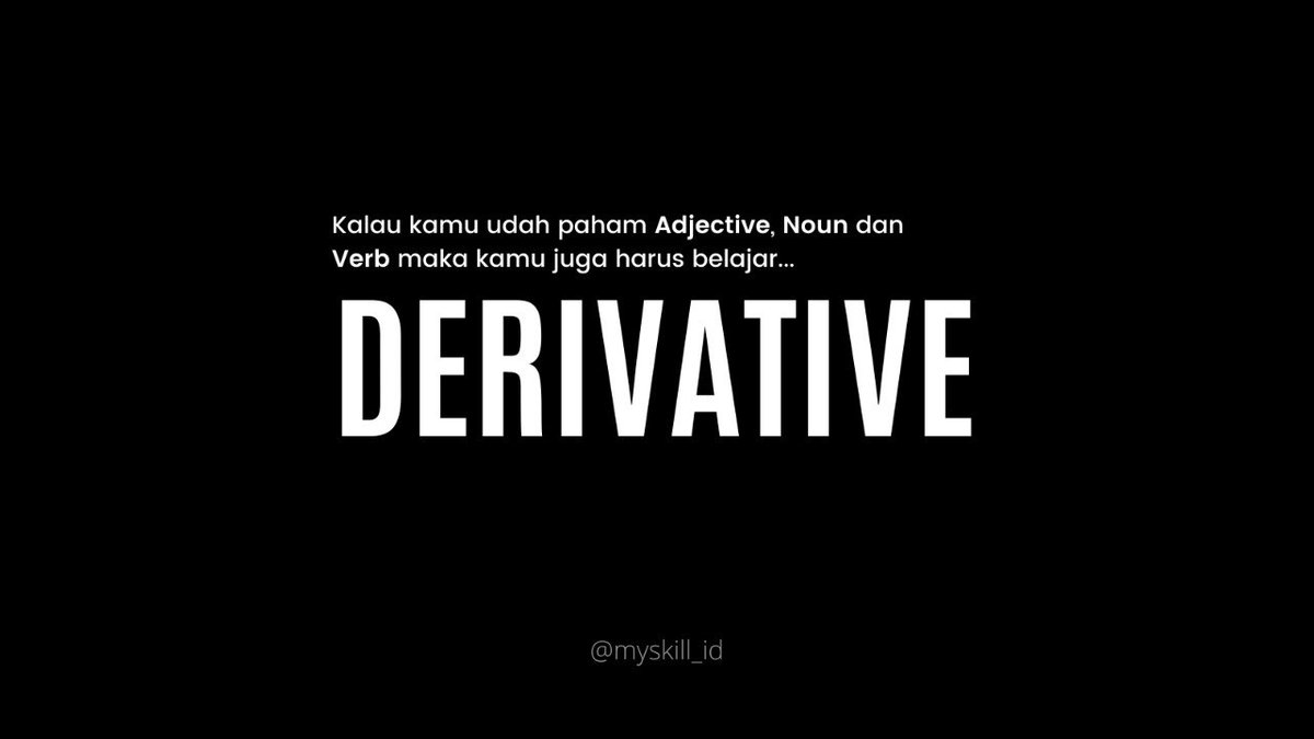 Derivative berarti turunan. Maksudnya adalah ketika suatu kata diberi affix (imbuhan) tertentu, maka kata tersebut dapat berubah fungsinya.