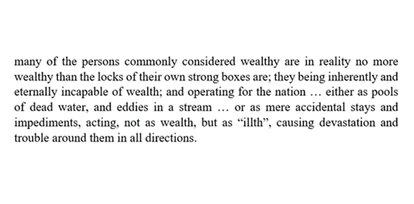 Perhaps we need a better idea of national "wealth", too? John Ruskin argued in 1860 that the opposite of "wealth" was "illth".
