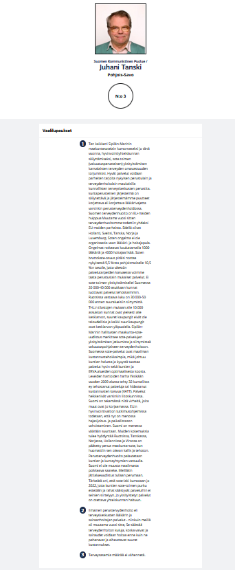 Ylen vaalikoneessa on ehdokkaan mahdollista antaa kolme ytimekästä vaalilupausta. Pohjois-Savon SKP suorittaa.