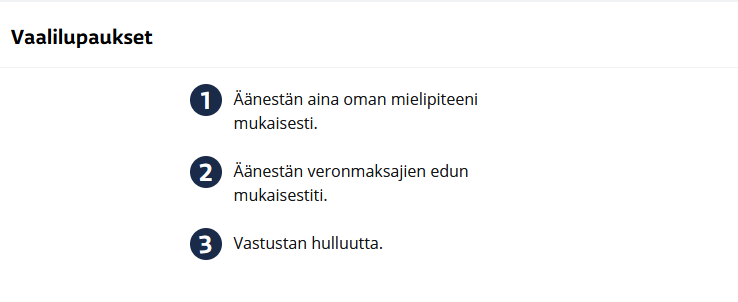 Ja tämä on vain yksi sitoutumattoman varsinaissuomalaisen kolmesta vaalilupauksesta!