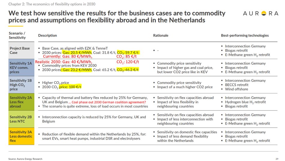 The study ‘CO2-free flexibility options for the Dutch power system’ looks broader, but the assumptions feel outdated. With a more realistic WACC, carbon and commodity and price, I estimate many more technologies will be profitable.