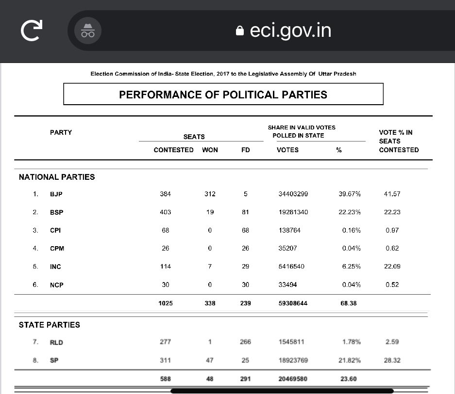 —BJP won the 2017 UP assembly election with a large margin of seats, winning 312 of the total 403