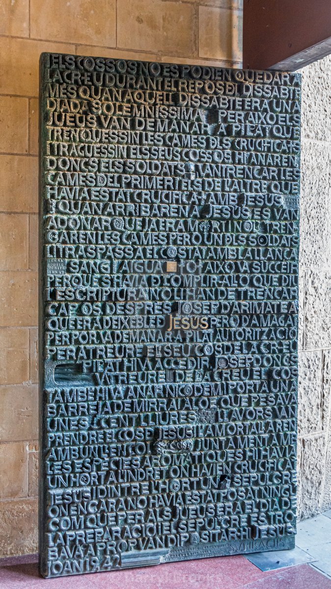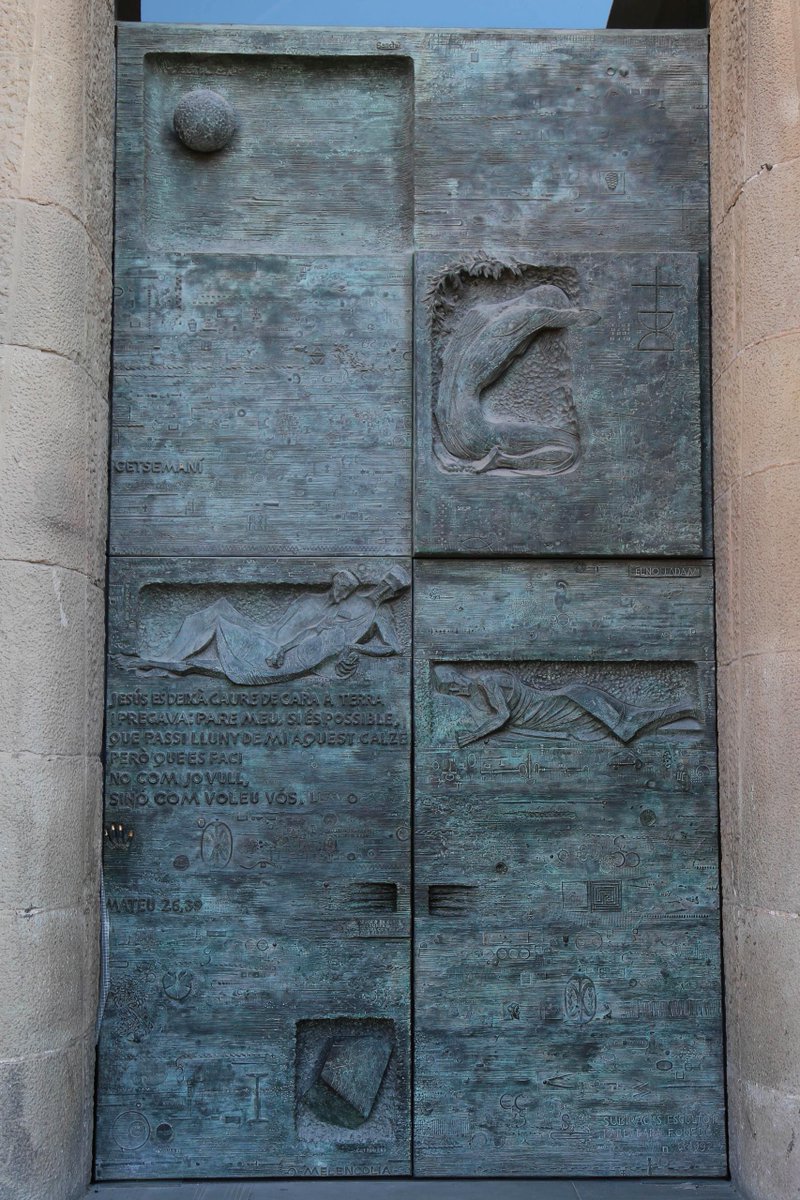 İsa'nın çilesi ve arkada şifreli kapı. Romalıların Kudüs'te Hz.İsa'ya ve takipçilerine yaptığı eziyetler Sagrada Familia'nın duvarlarına ustalıkla işlenmiş.