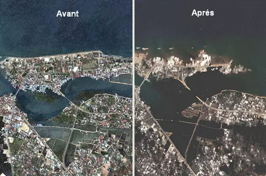 Le port de Banda Aceh (Indonésie), avant et après la vague.