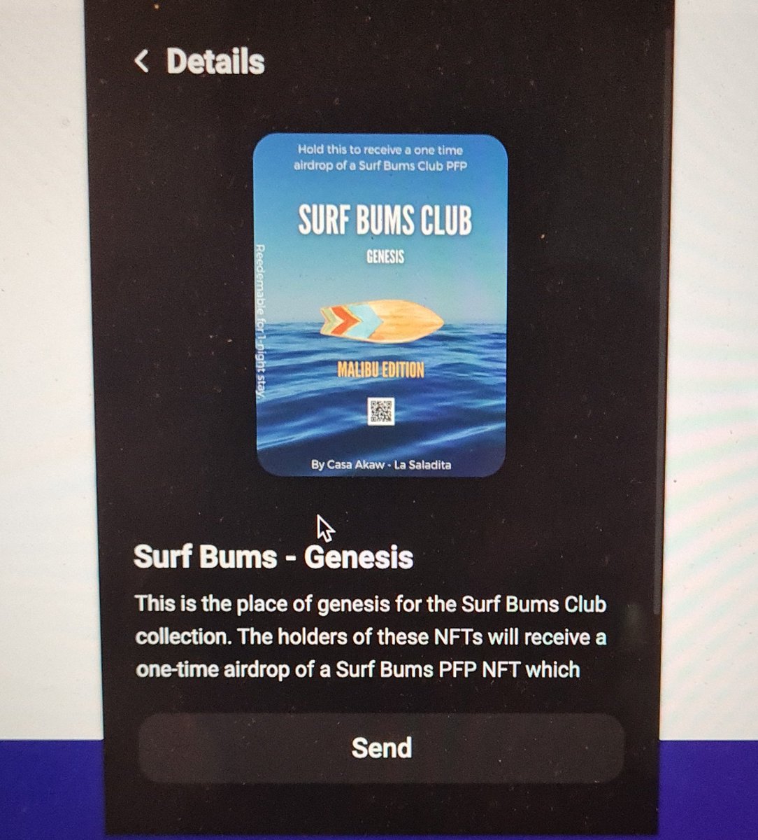 - @SurfBumsClub Es un NFT que te da acceso a una propiedad del mundo real. Recibe airdrops de noches de estancia que puedes revender en mercados de NFT. Tablas de surf gratis...