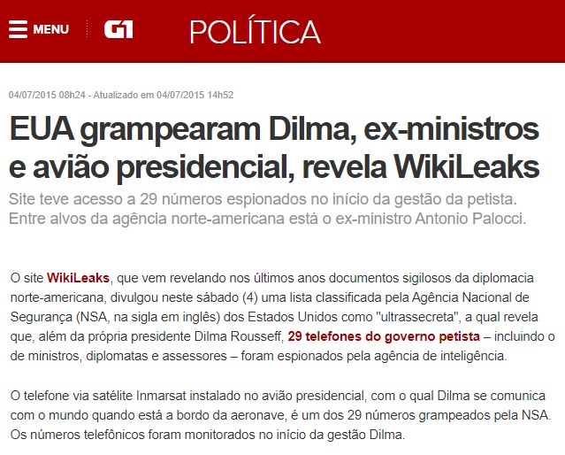 ... e de criação de de um sistema alternativo aos acordos de Bretton Woods. O Brasil se tornou então objeto de uma campanha de desqualificação da imprensa ocidental e também passou a ser um alvo preferencial dos programas de espionagem e vigilância conduzidos pela NSA.