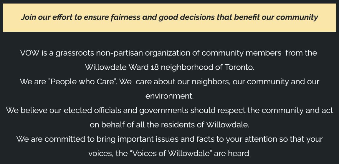 4) (aside: in the first version of the website, where they describe themselves, they had “people who care” and “Voices of Willowdale” in quotes, which was kind of amazing)
