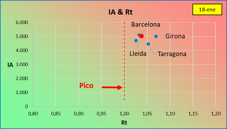 Si nos centramos sólo en los últimos días perdemos fiabilidad sobre mi Rt estándar (por eso no la publico) pero vemos hoy lo que escucharéis esta semana