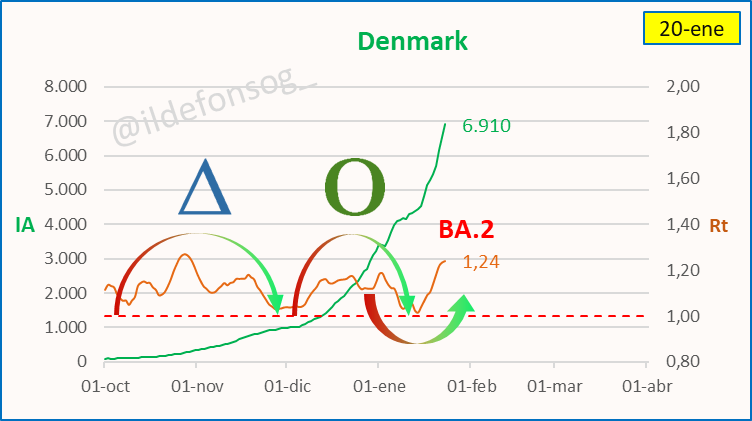 Otra conclusión muy importante es que mi análisis descarta el riesgo de presencia de la variante BA.2 de #Omicron que sigue creciendo en Dinamarca 🇩🇰 8/9