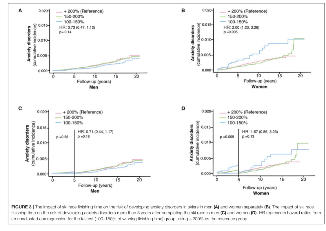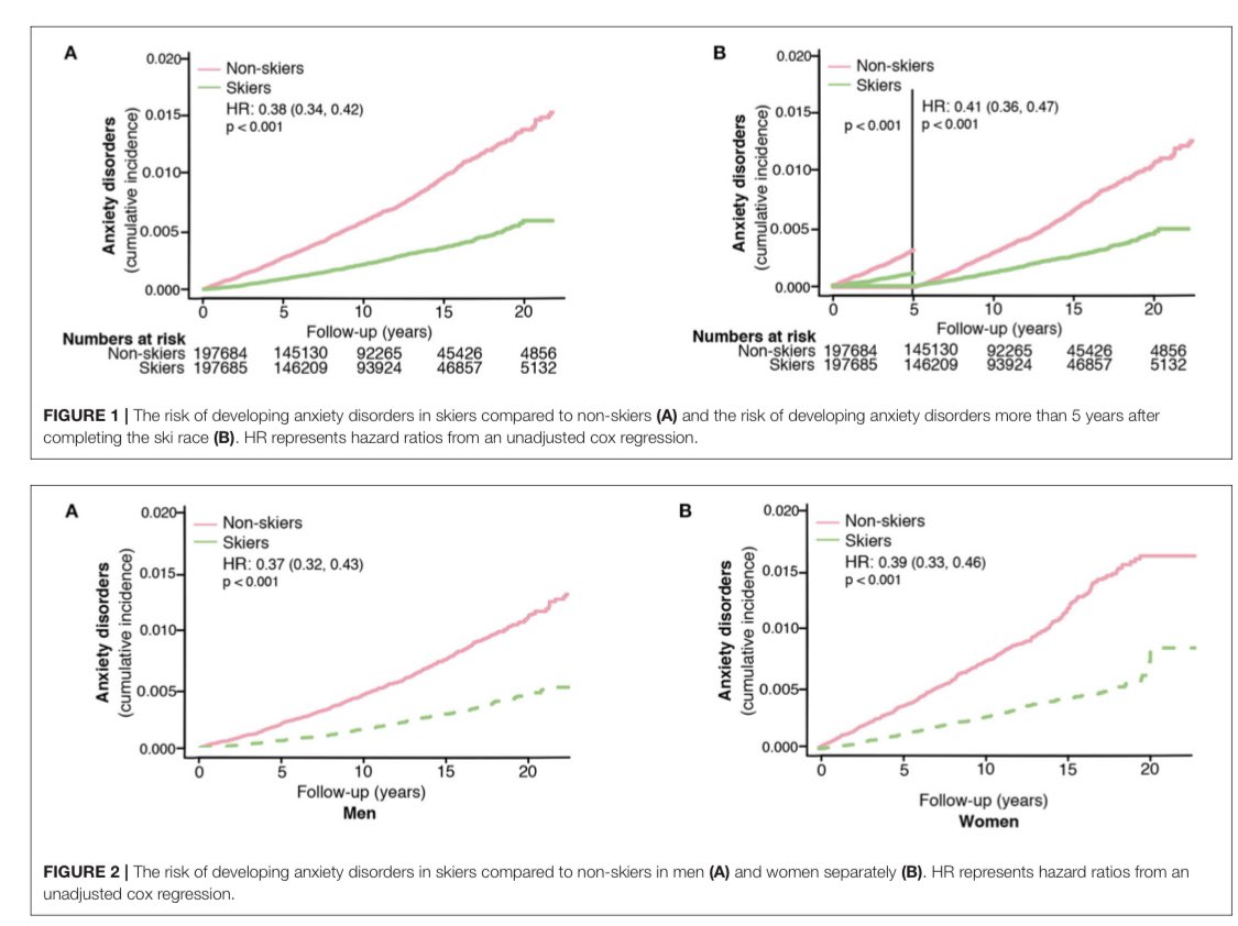 ⛷Las personas que esquían tienen menor probabilidad de desarrollar ansiedad (HR 0.42).