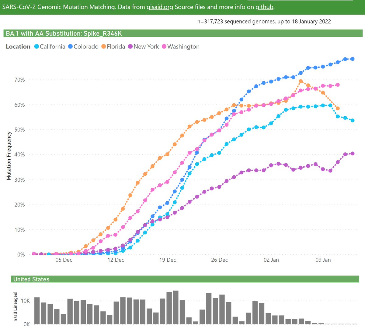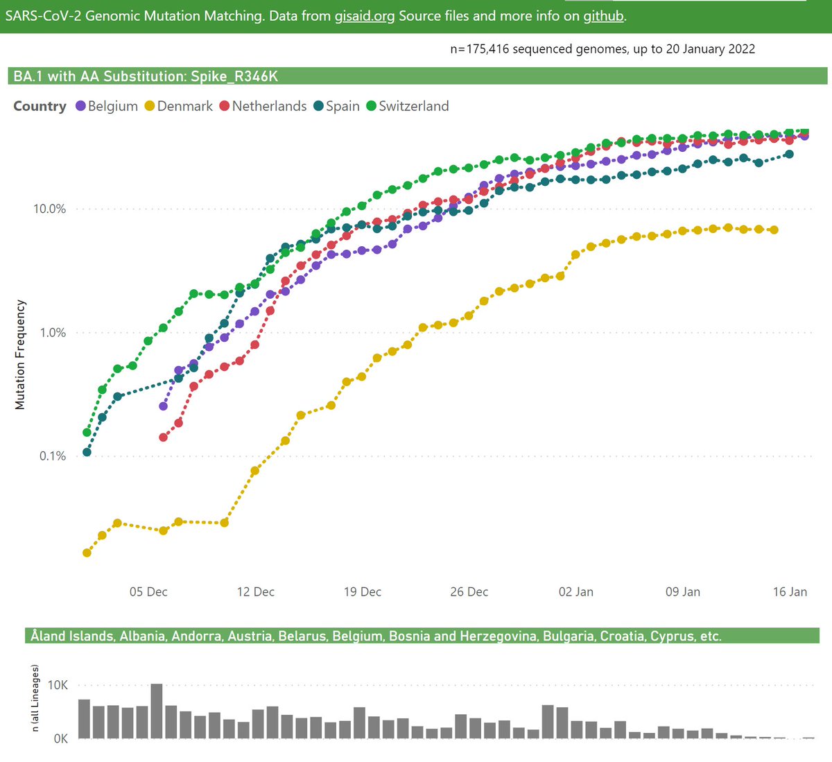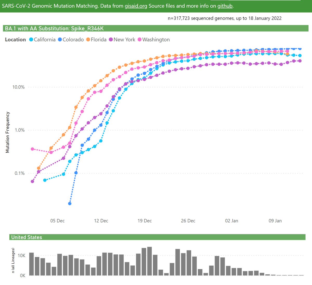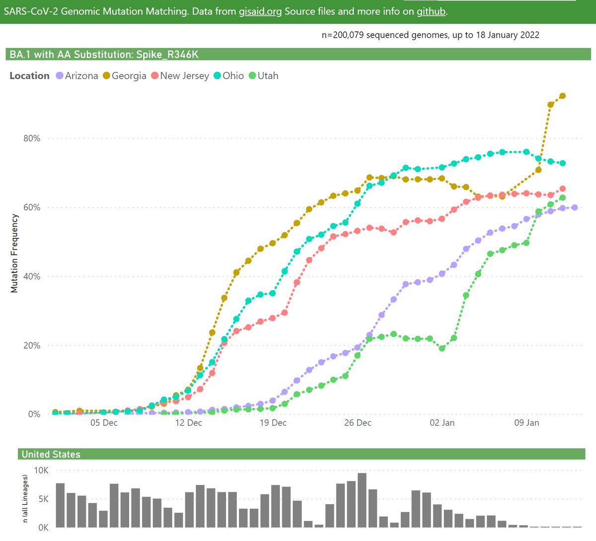 In the United Kingdom, the frequency of BA.1 with the Spike R346K mutation has been steadily growing, recently at ~25% (of all BA.1 samples).