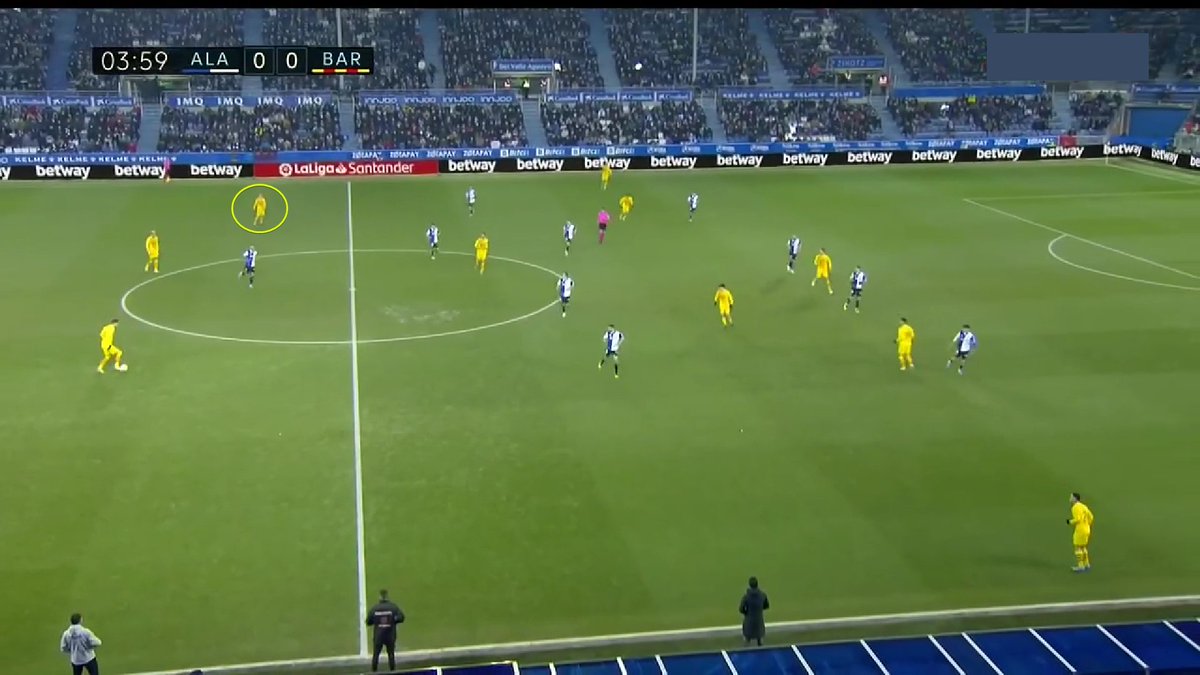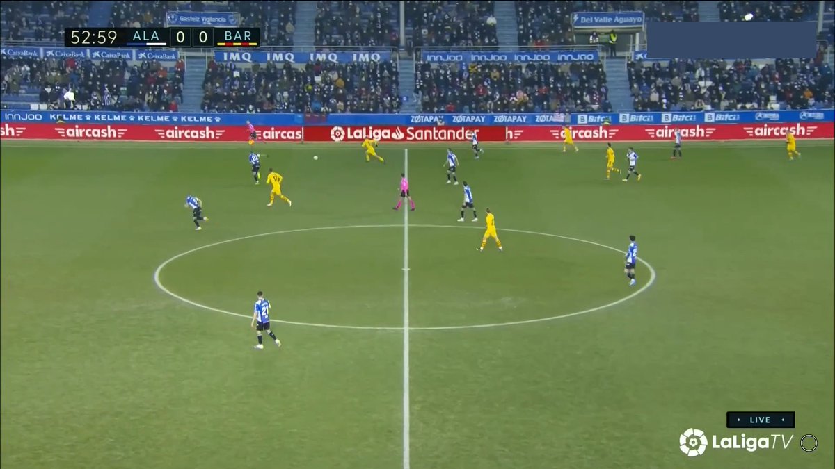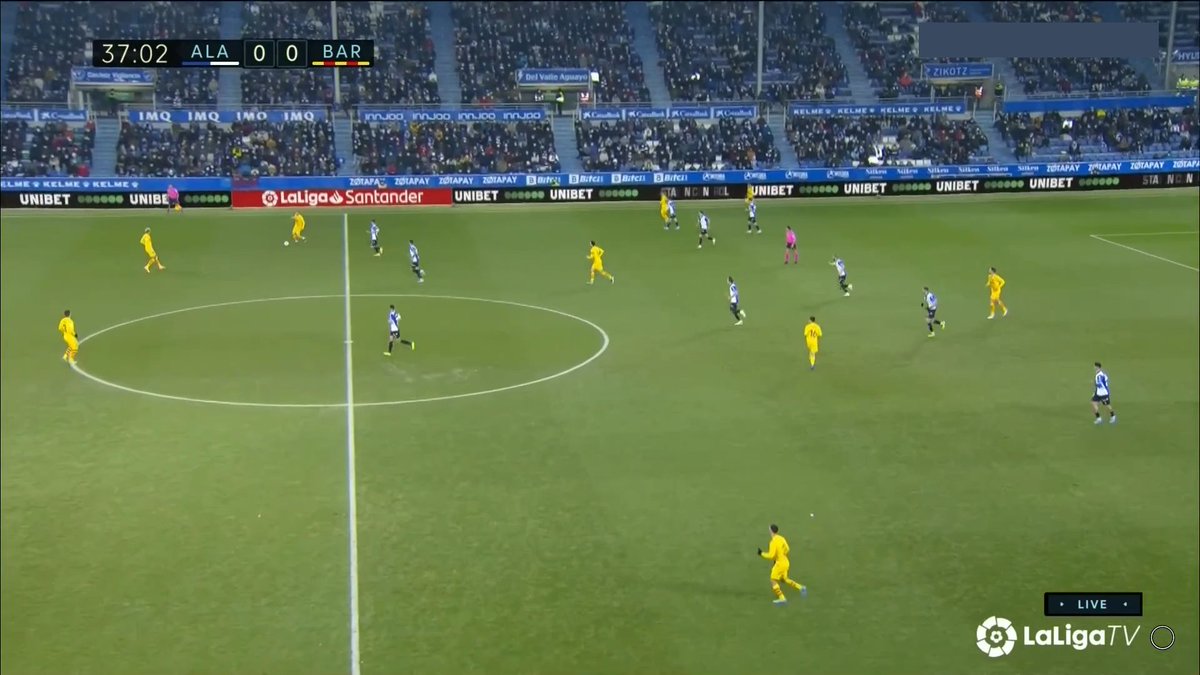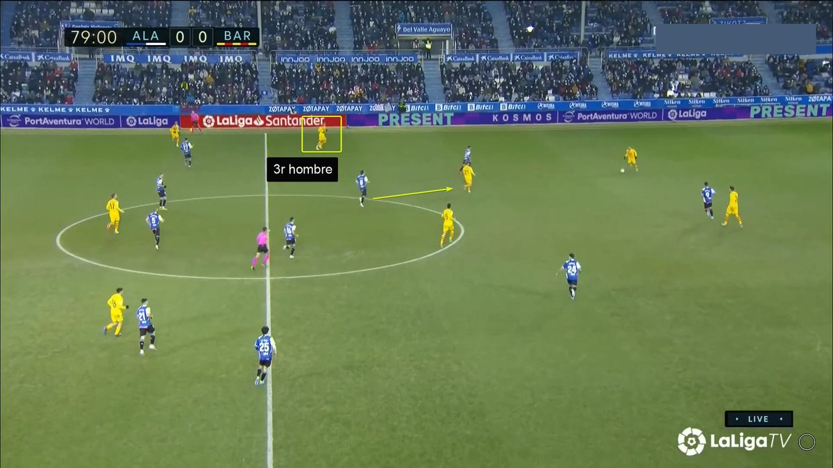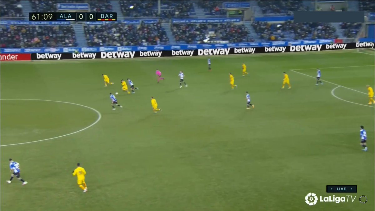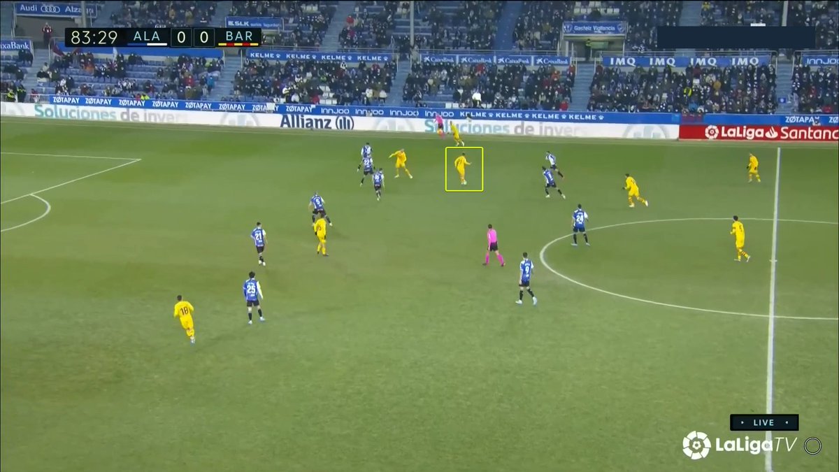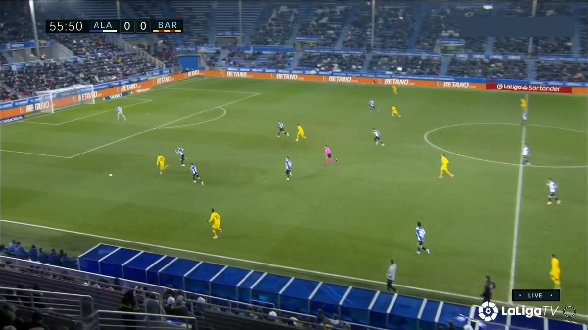 La única vez en todo el 1T que un central se animó a conducir y obligar al Alavés a reajustar, se originó una situación clara de superioridad en carril central, con el apoyo de Luuk y la aparición de Pedri como 3r hombre.