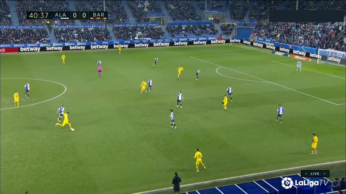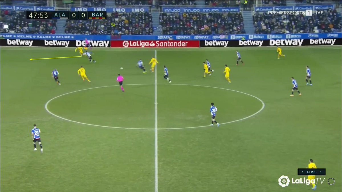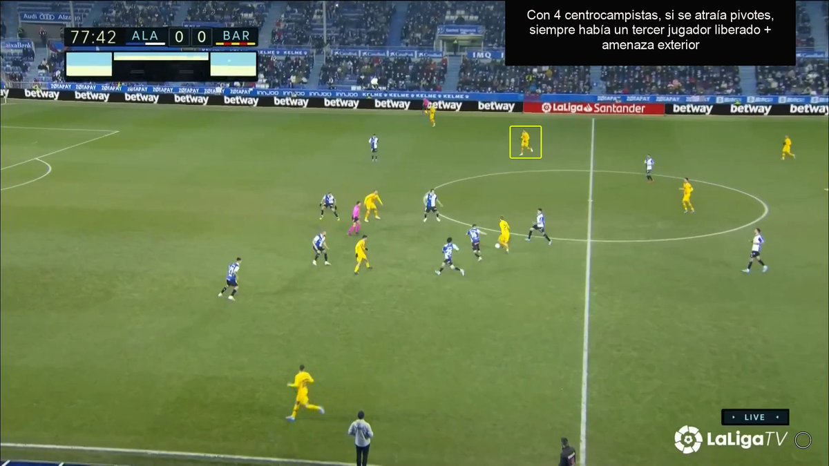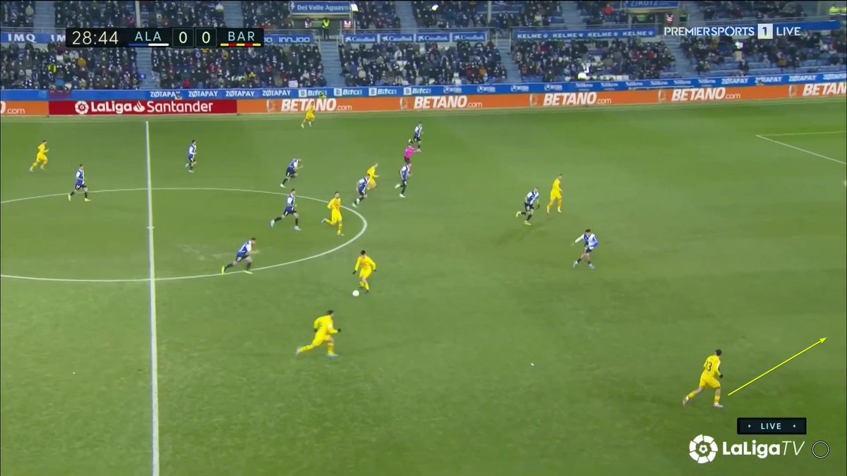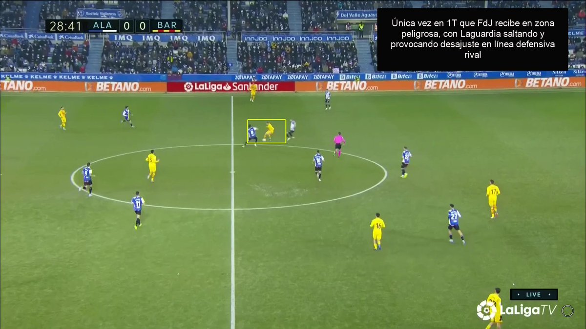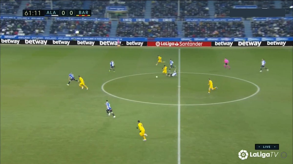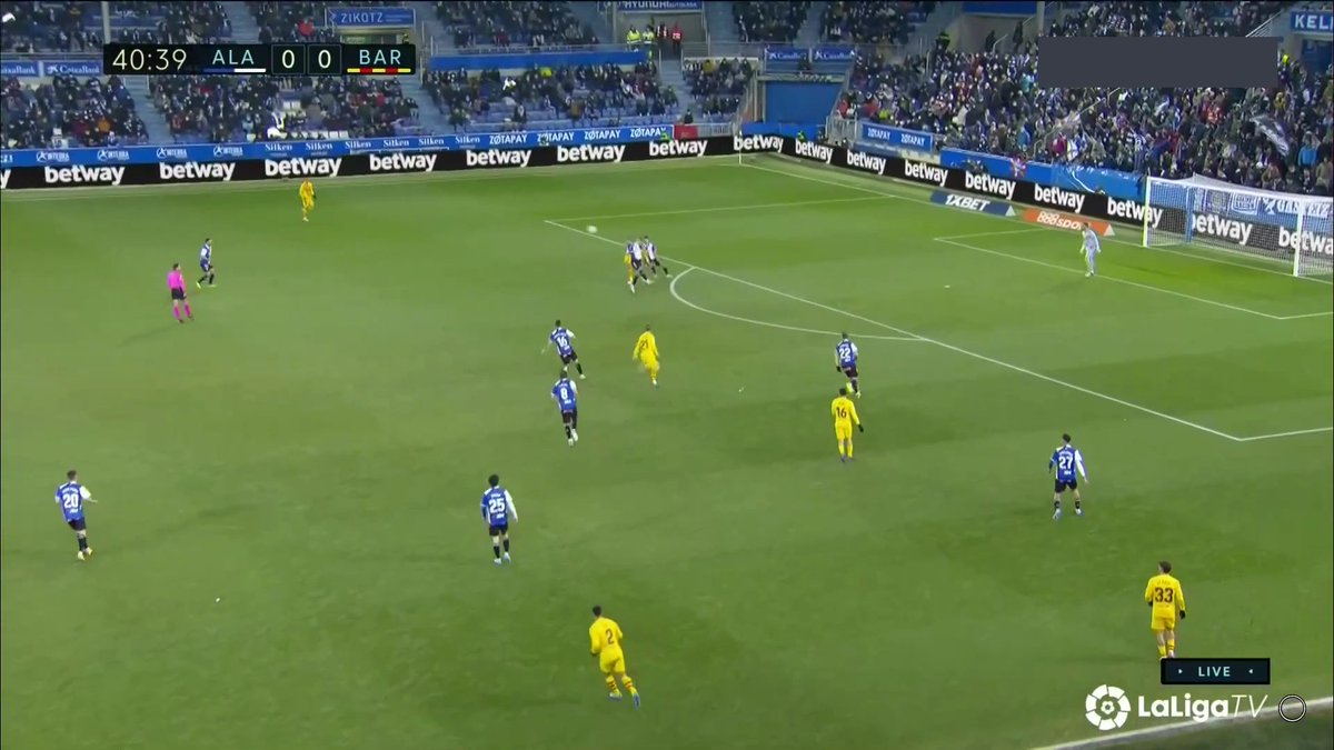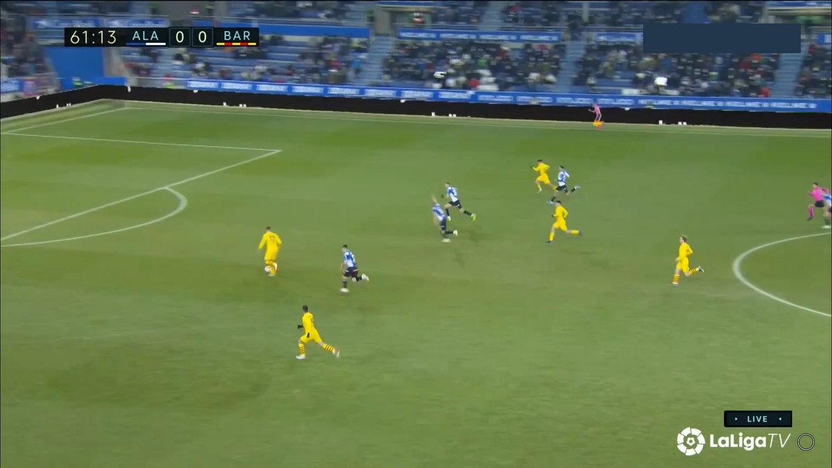 La única vez en todo el 1T que un central se animó a conducir y obligar al Alavés a reajustar, se originó una situación clara de superioridad en carril central, con el apoyo de Luuk y la aparición de Pedri como 3r hombre.