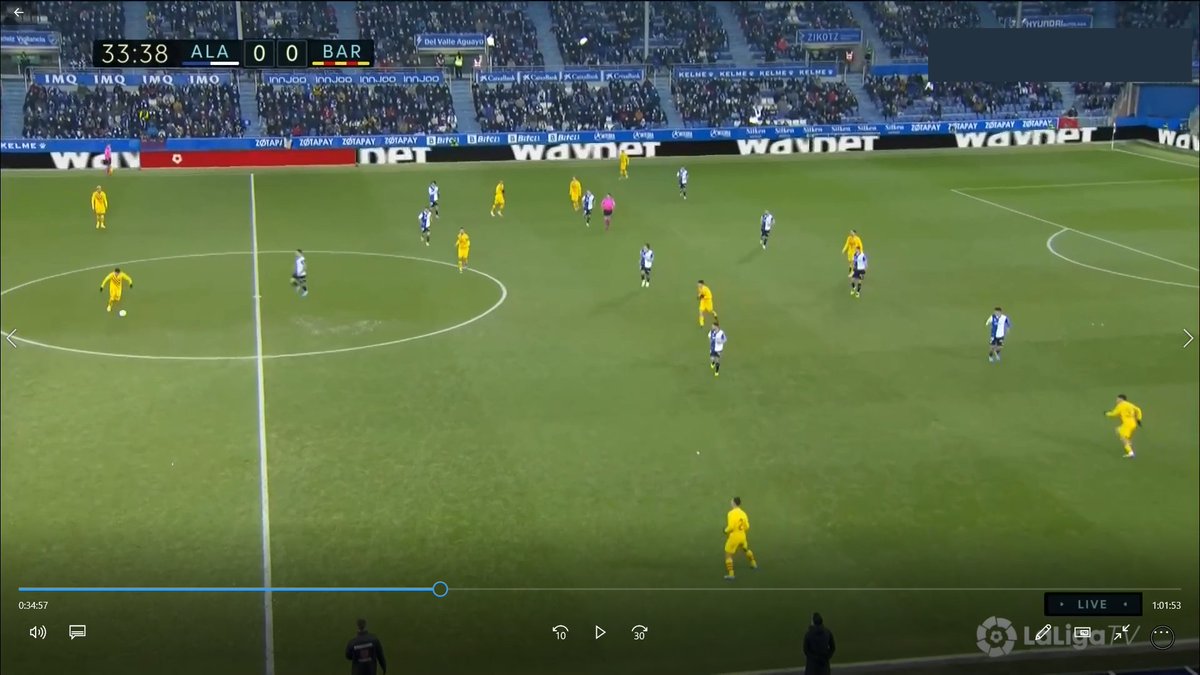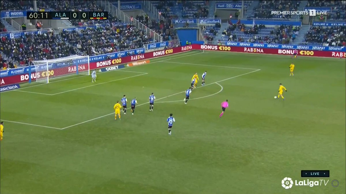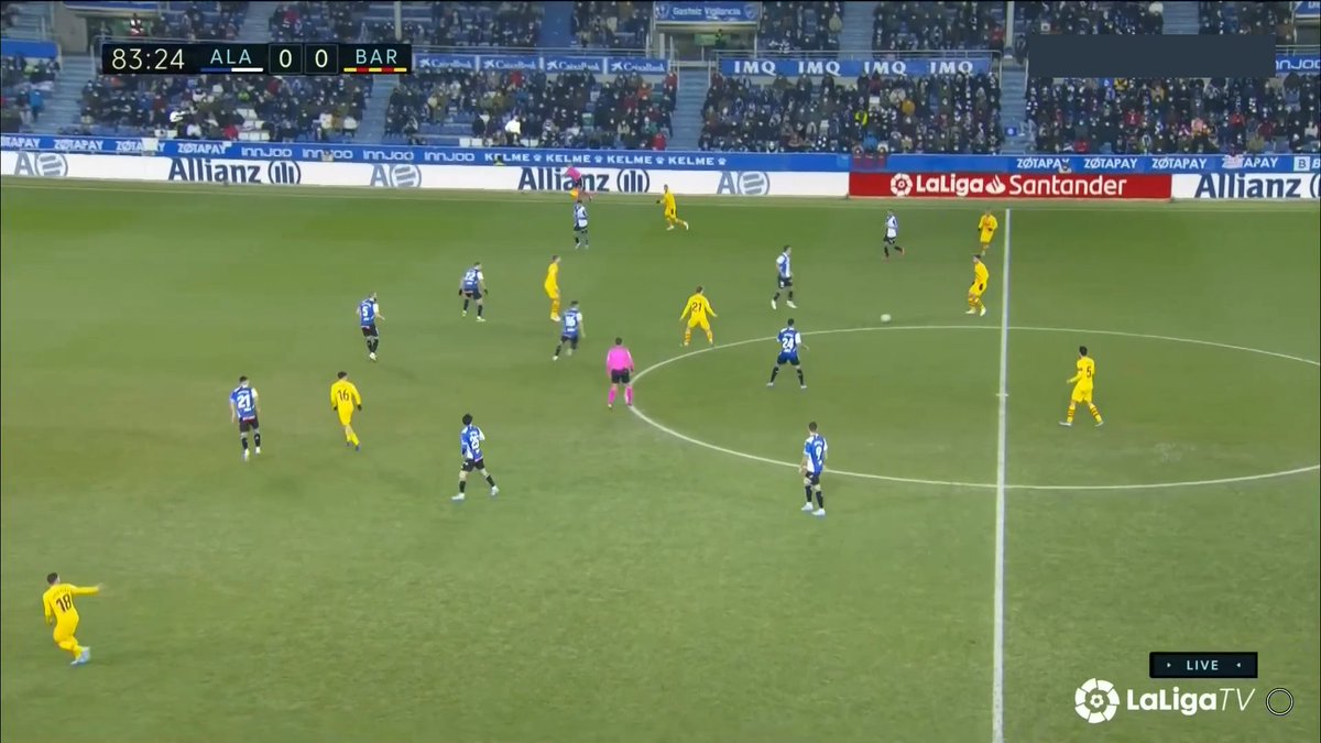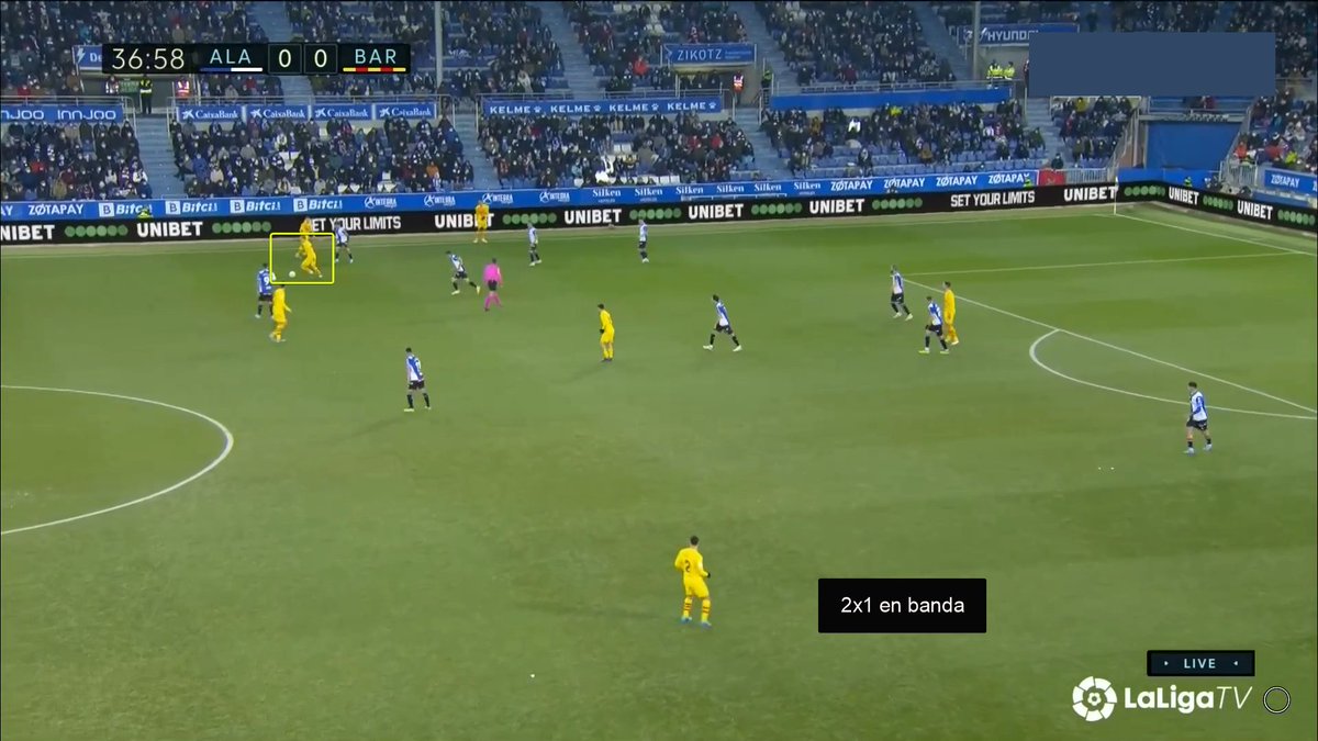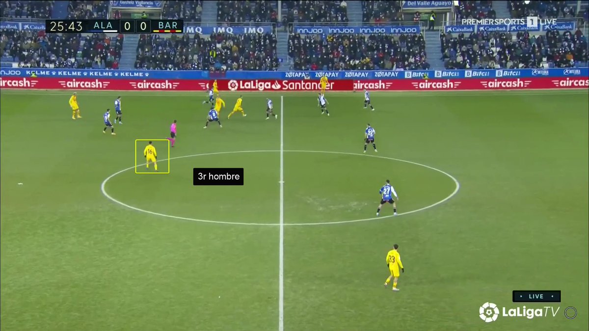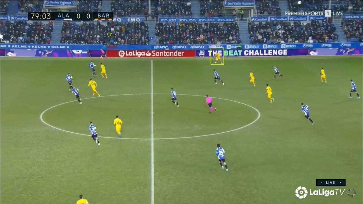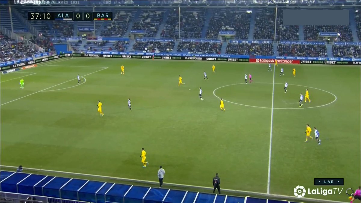 La única vez en todo el 1T que un central se animó a conducir y obligar al Alavés a reajustar, se originó una situación clara de superioridad en carril central, con el apoyo de Luuk y la aparición de Pedri como 3r hombre.