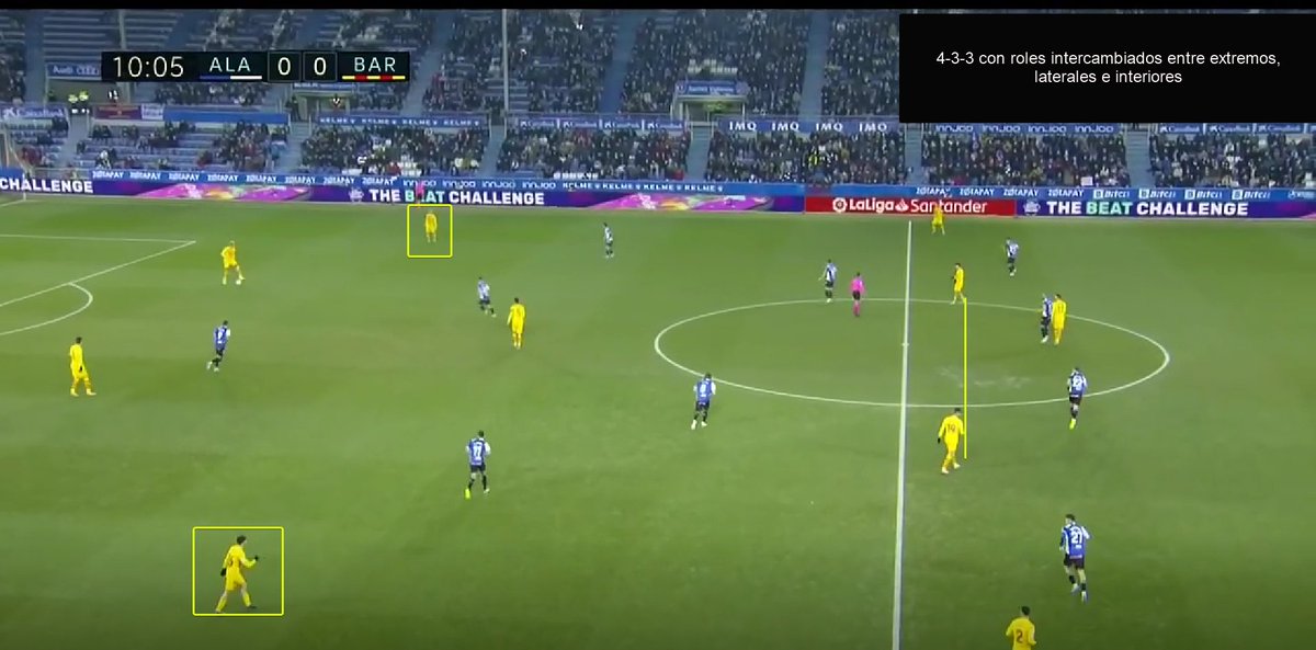 Xavi ajustó y pasó al 3-4-3, cosa que funcionó bastante bien porque el partido pedía un centrocampista más para buscar los costados del doble pivote, arrastrar a un central con el interior y poder seguir teniendo 1x1 en banda.