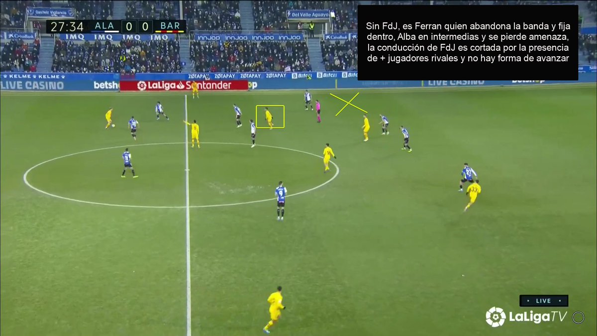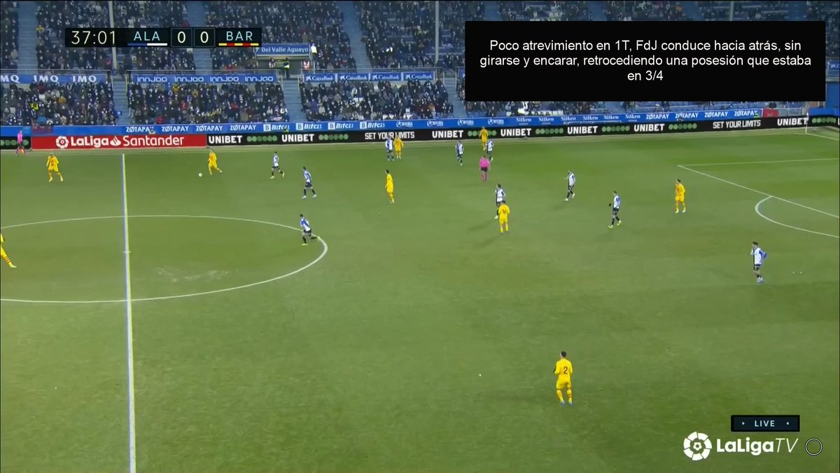 Os dejo dos secuencias en las que tanto FdJ como Busi fallan pases sencillos, casi de forma consecutiva. Esto es señal inequívoca de que el equipo está bajo mínimos a nivel de confianza. Ayer fue un cúmulo brutal de imprecisiones, malos pases, etc.