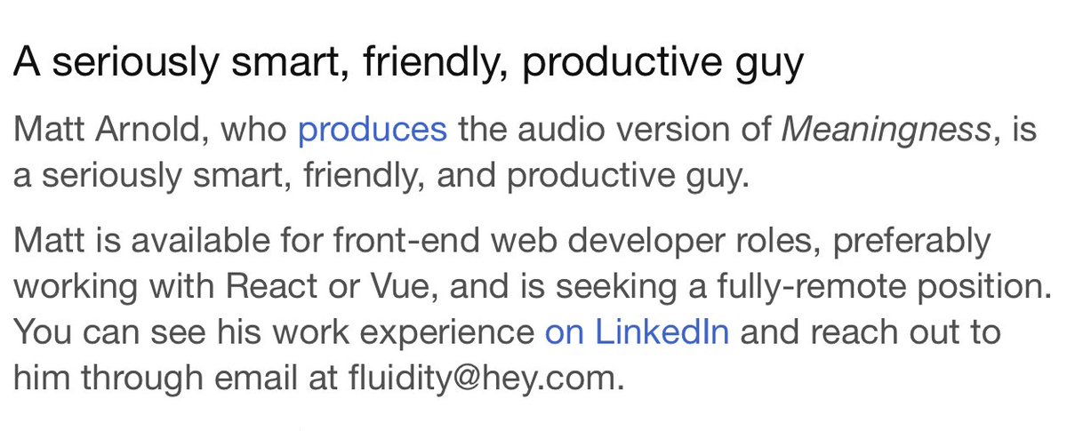 Looking for a React/Vue developer? Matt Arnold is smart, friendly, experienced, productive, and available.