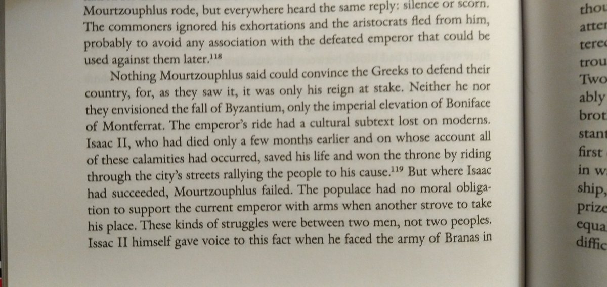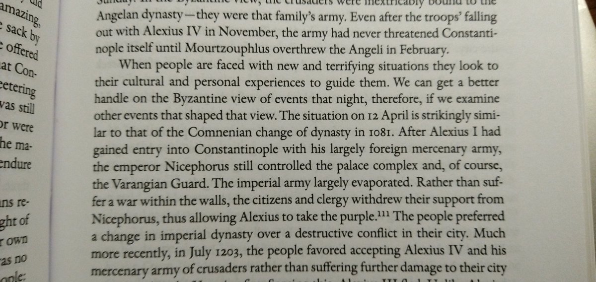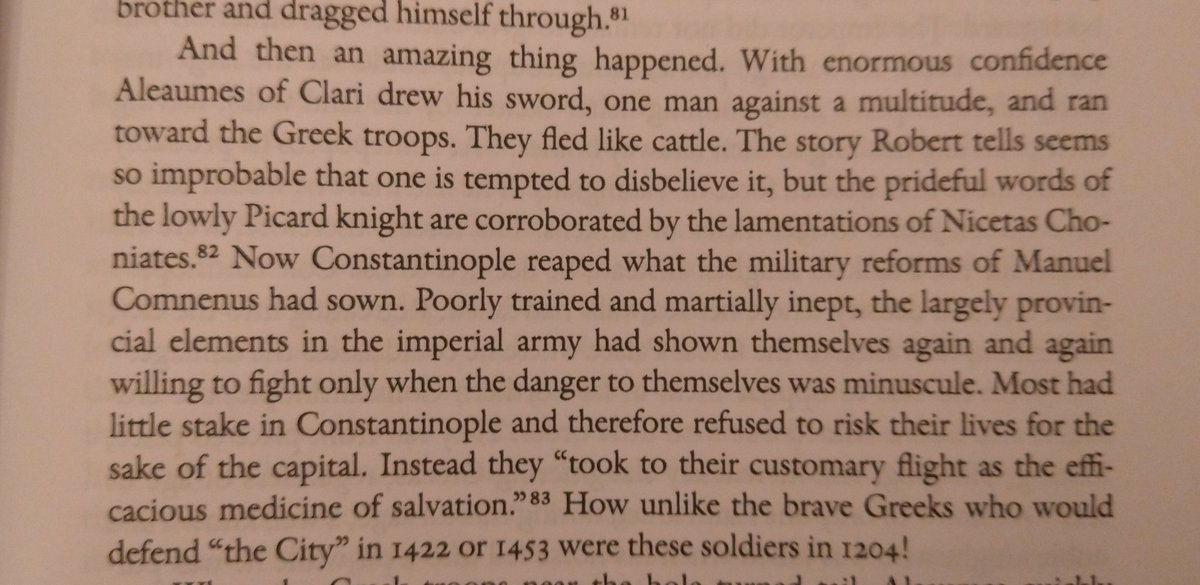So infectious was this spirit that even Alexius V lost his nerve against a single Frankish knight who had managed to wriggle inside a gate. Once the defenders on the walls saw the emperor flee, the abandoned their posts en masse.
