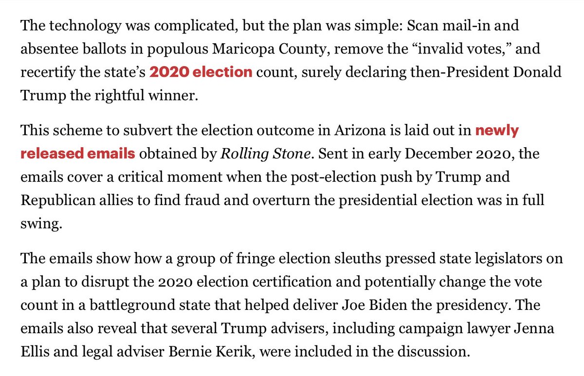 Yesterday, we learned of a related Arizona plot. Throw out just enough ballots to flip the state to Trump. State legislators were on board. Mark Waldron, author of the Coup Powerpoint was involved. The plotters were in contact w/ Trump's team. But, again, they needed more time.