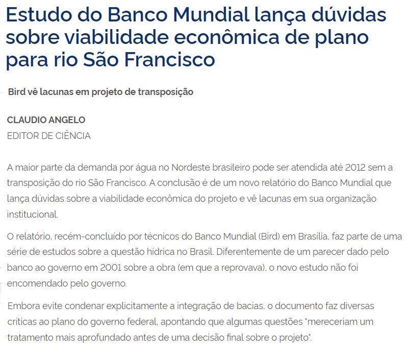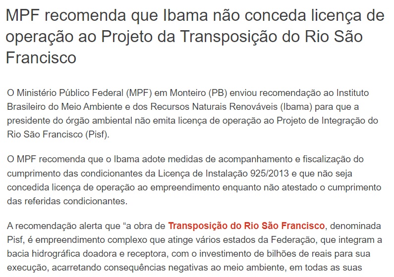 O conluio entre judiciário, imprensa, ONGs e instituições internacionais para barrar a transposição pode ser compreendido como mais um exemplo de instrumentalização de pautas ambientais para barrar projetos de desenvolvimento em países periféricos.