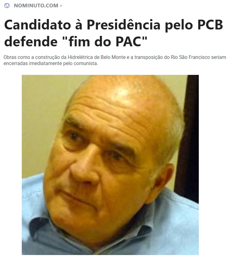 Ivan Pinheiro, candidato à presidência pelo PCB, declarou que encerraria imediatamente as obras da transposição caso chegasse à presidência, junto com todos os projetos tocados pelo Programa de Aceleração do Crescimento (PAC).