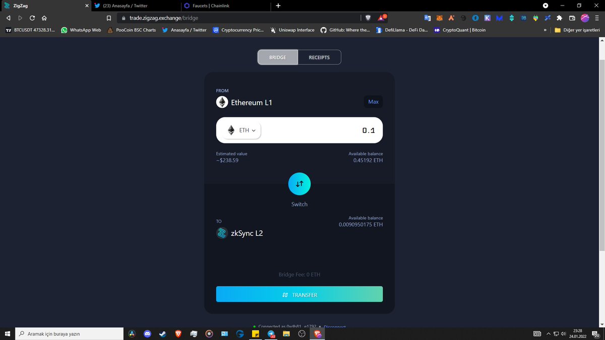 Burada testnette yapacağımız gibi L1-L2 arası Ethereum varlıkları transfer edebiliyorsunuz.