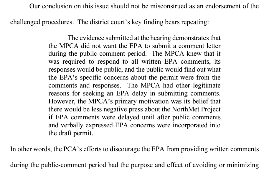 So I was really interested in how the Appeals Court decision would address this. And they did - while failing to provide a remedy. But read this - is THIS what you expect from your MN Pollution Control Agency? (19/