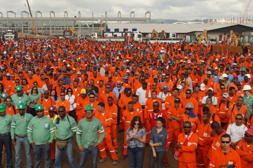 O presidente Lula, a primeira-dama Marisa Letícia e a ministra-chefe da Casa Civil Dilma Rousseff se encontram com trabalhadores do estaleiro BrasFels, em Angra dos Reis, onde estava sendo construída a plataforma P-51 da Petrobras.