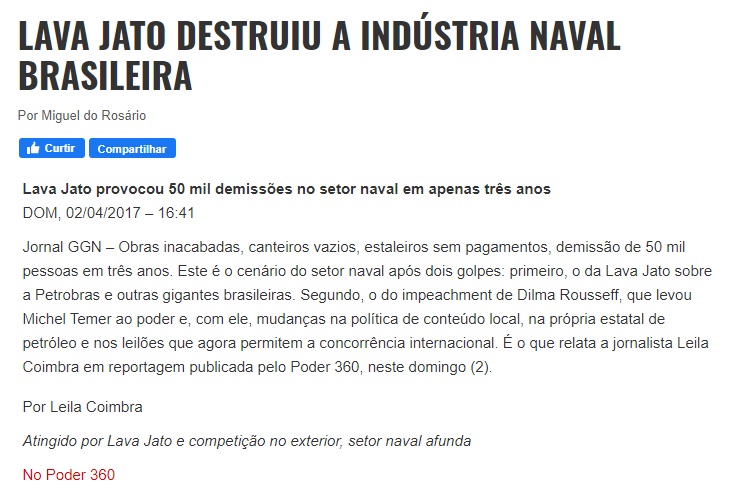 Esse processo se aprofundou com o desmonte da Petrobras implementado desde o governo de Michel Temer e aprofundado sob Bolsonaro. As indústrias navais dos Estados Unidos e União Europeia, beneficiadas pela destruição dos estaleiros nacionais, agradecem.