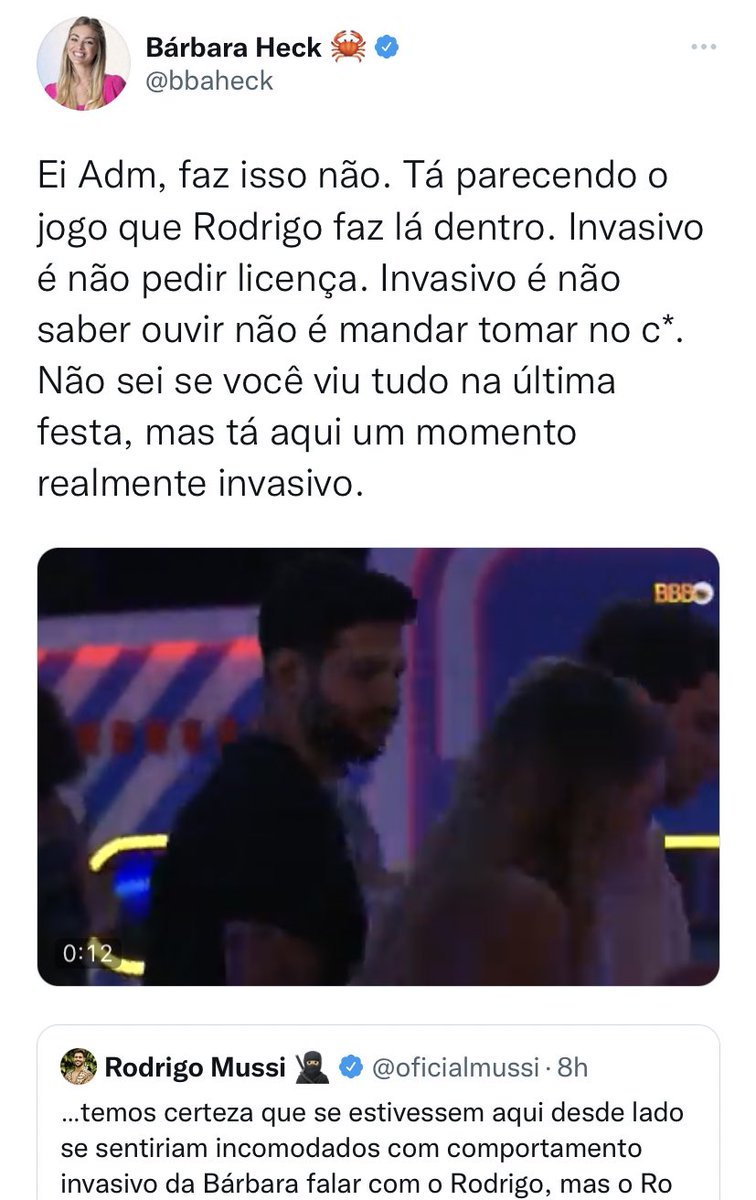 Bárbara: “Quando digo que não seja tão paranóico, não é pra te chamar de doido, só não quero que as coisas te afetem tão forte, viemos jogar sim e justamente por ser jogo que não devemos levar pro coração”