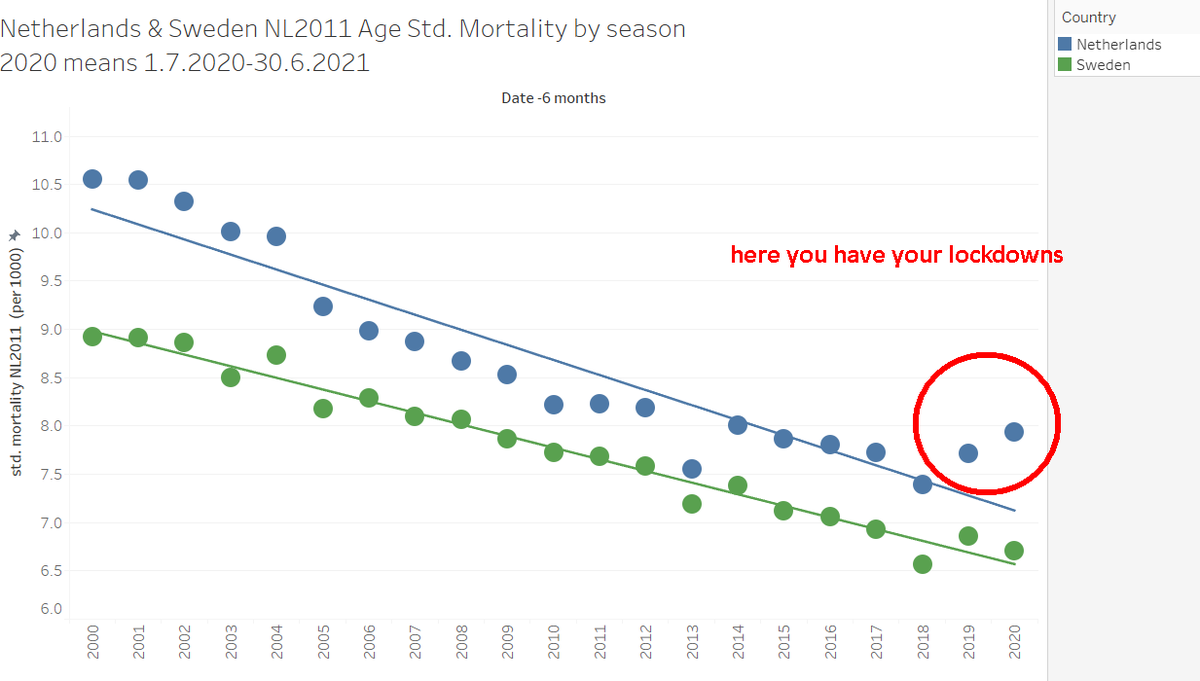 3/ So let's also show the same age group 15-64 for the great pandemic year 2020 and show how Sweden "failed" (to kill the young) while USA was following the pope of science, Dr. Fauci.