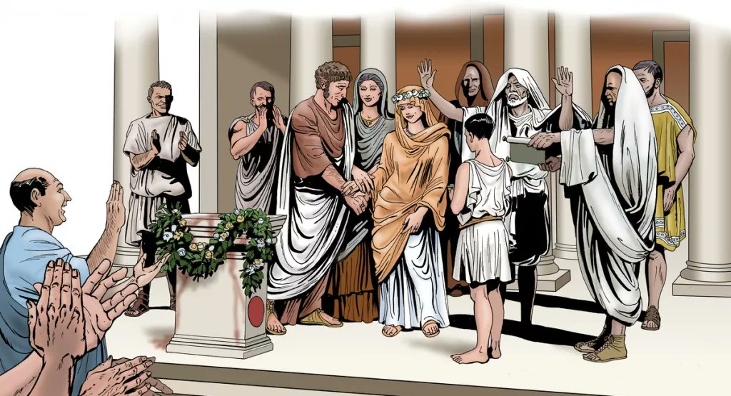 La prometida era acompañada por una madrina, la pronuba, que se hubiese casado con un solo hombre.