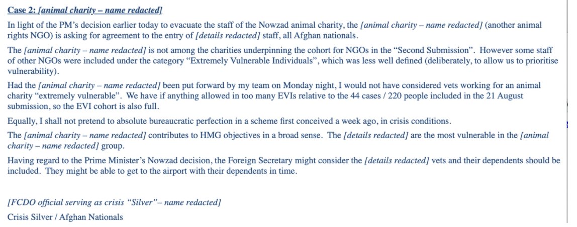 This email specifically refers to "the PM's decision earlier today to evacuate the staff of the Nowzad animal charity" and gives advice to the Foreign Secretary on how to enact "the Prime Minister's Nowzad decision"