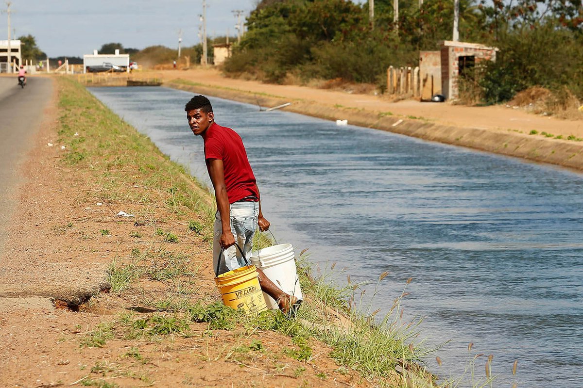 Um canal de irrigação com águas desviadas do Rio São Francisco cruza a mata seca da caatinga no semiárido nordestino. Iniciada em 2007, durante o segundo mandato de Lula, a Transposição do Rio São Francisco é uma das maiores obras de segurança hídrica da história.