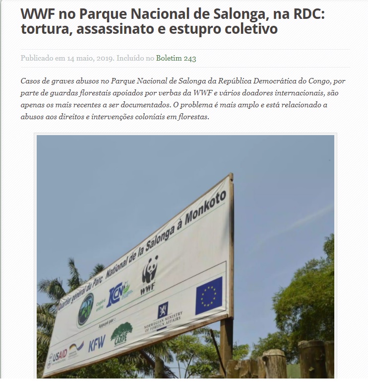 Não é apenas em Sumatra que a WWF emprega paramilitares. Milicianos financiados pela ONG também são acusados de cometer graves crimes nas reservas que administra na República Democrática do Congo, incluindo tortura e estupro de crianças e execuções sumárias de nativos.