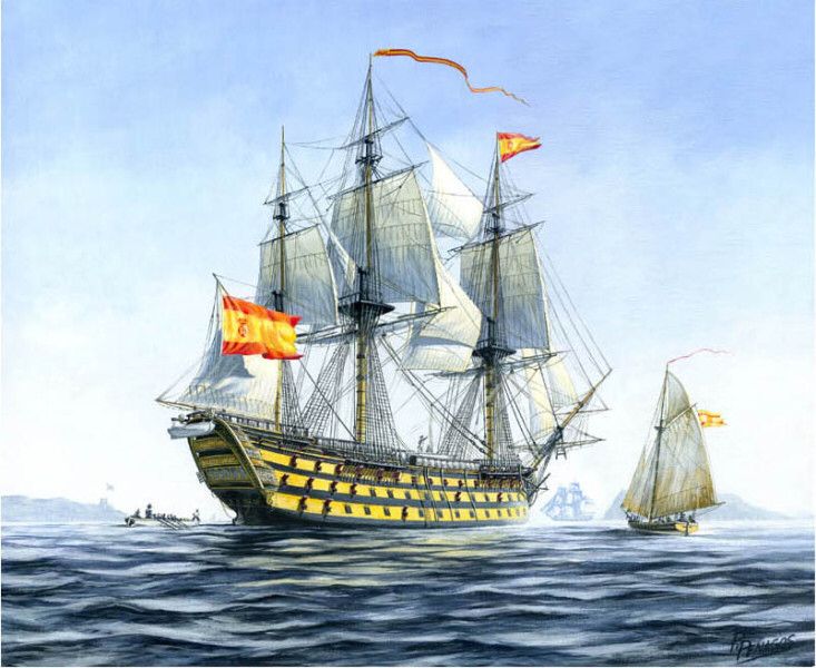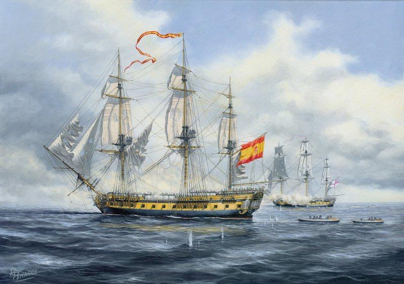 Tal día como hoy, 25 de enero de 1797, el navío San Francisco de Asís del capitán Alonso de Torres navegaba en solitario frente a la costa de Cádiz cuando los vigías informaban de una división de 4 fragatas británicas. El comandante español mandaba tocar a zafarrancho.