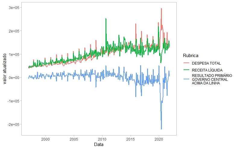 Está interessado em todas as séries temporais só de receita primária ou só de despesa primária? Uma linha de comando do {rtn} para cada uma dessas opções. (3/n)