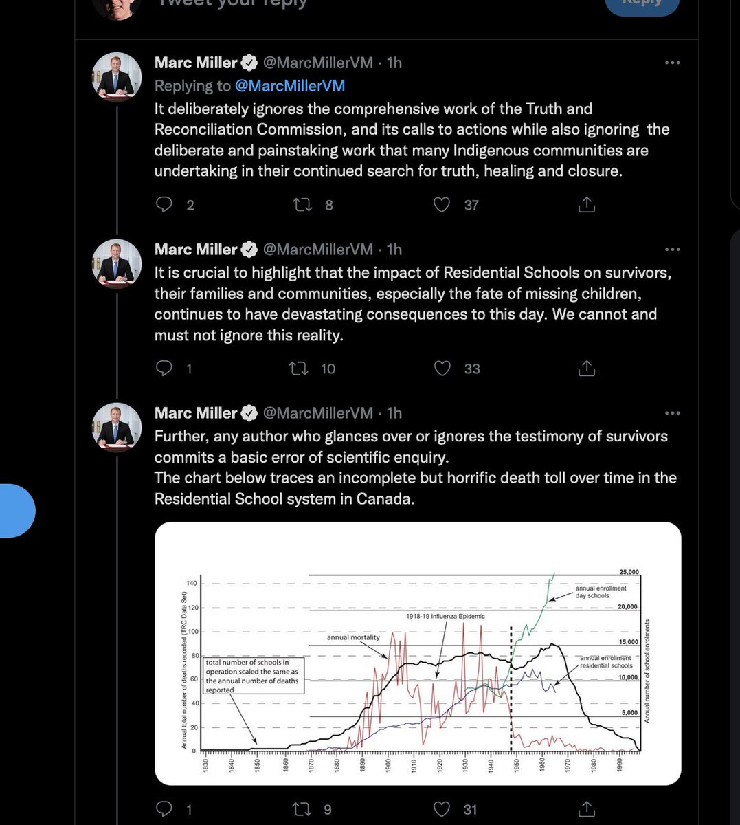 If it were alleged that *white* children were slaughtered, & their remains buried in a specified location, can anyone imagine Mr. Miller lecturing us not to investigate the crime in timely fashion? By what 19th-c racist logic do we not accord the same importance to FN children?
