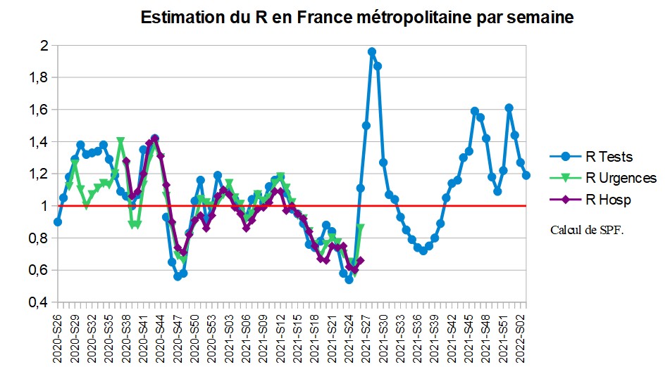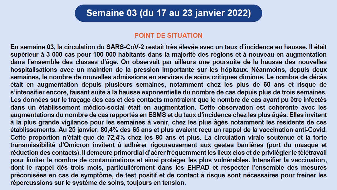 1% de BA.2 (un sous-lignage d'Omicron qui monte dans divers endroits) dans l'enquête Flash en S02 (données non consolidées).