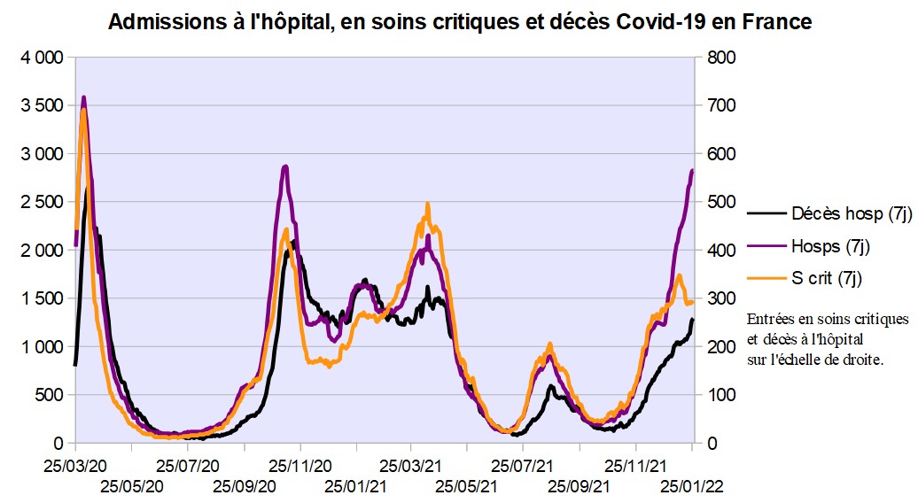 La part de B.1.1.529 dans les cas, les différentes hospitalisations et les décès. Ça donnerait ~2300 hospitalisations, ~220 entrées en soins critiques et ~200 décès par jour en S03.