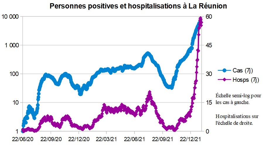 La Réunion est le département au taux d'incidence le plus élevé (5373). Record d'admissions à l'hôpital depuis le début de la pandémie, même si le taux d'hospitalisation a baissé. Le pic approche peut-être.