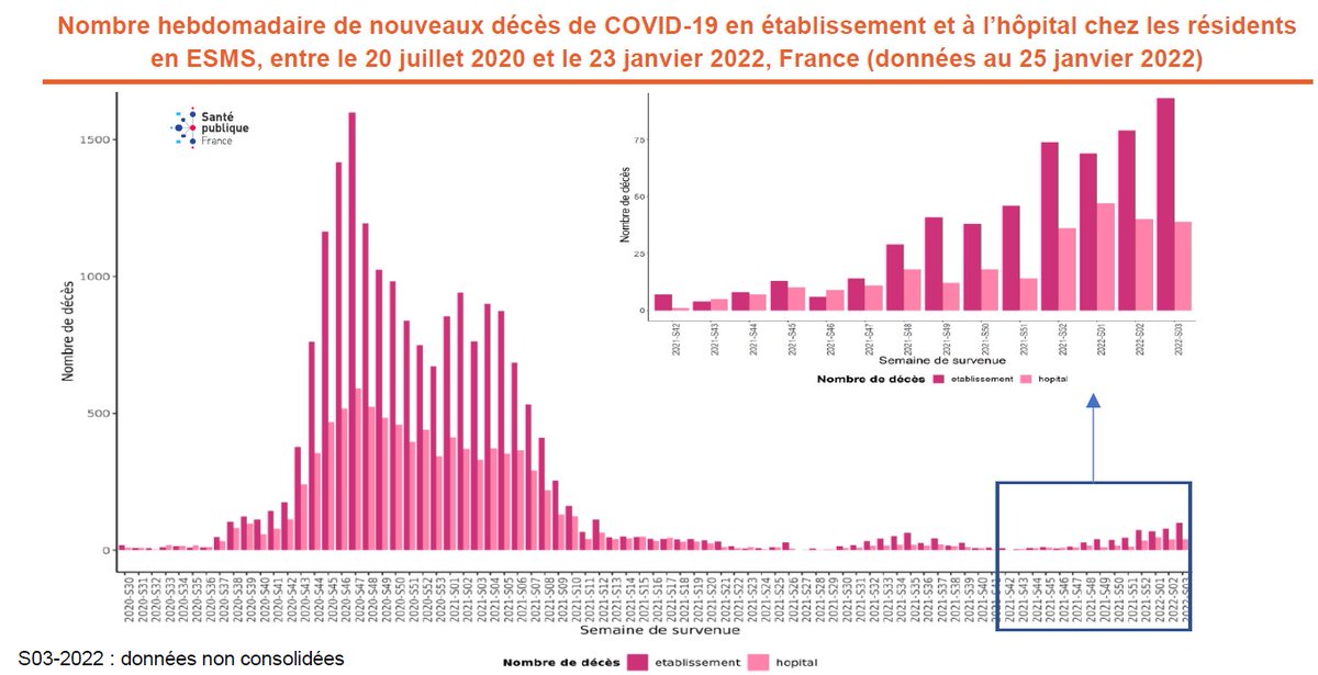 La vague monte dans les Ehpad. Les décès, qui sont à des niveaux beaucoup plus bas que lors des vagues pré-vaccinales, sont également en augmentation.