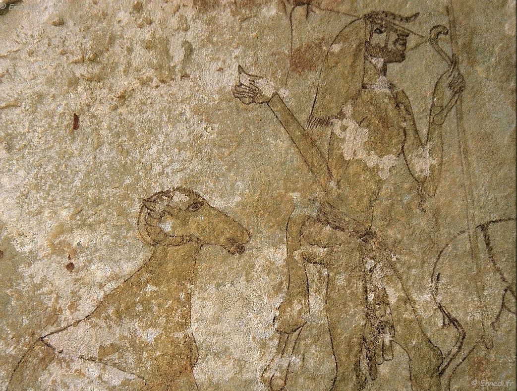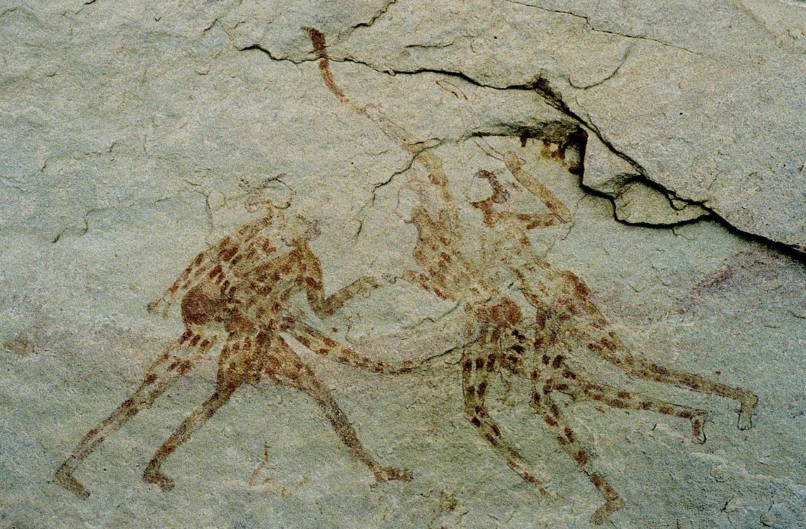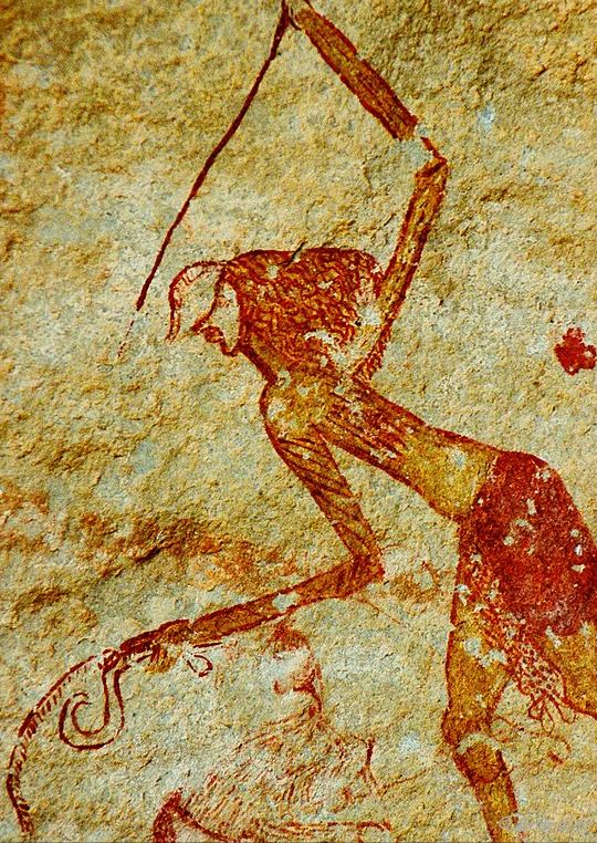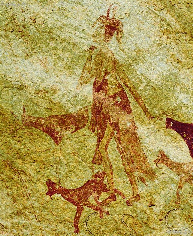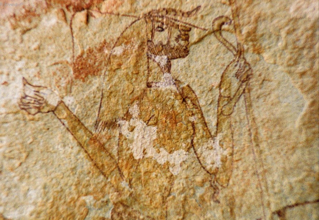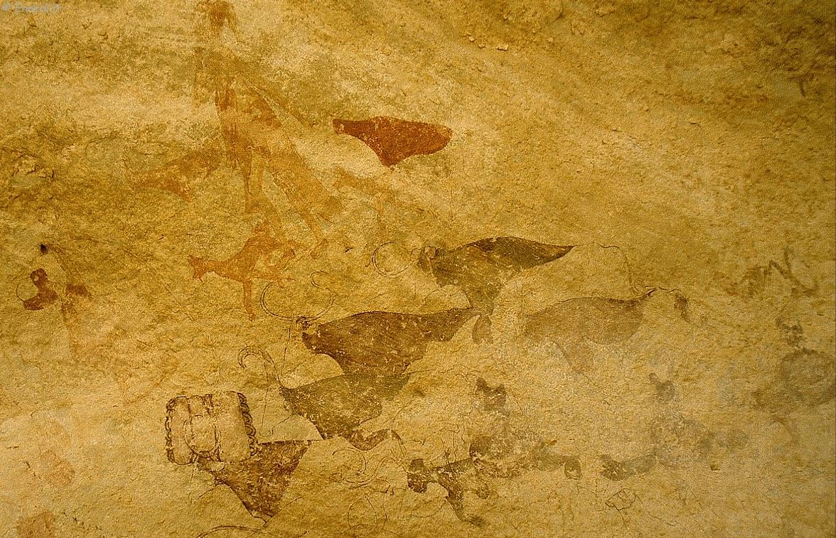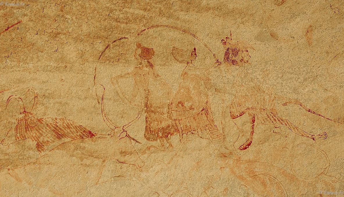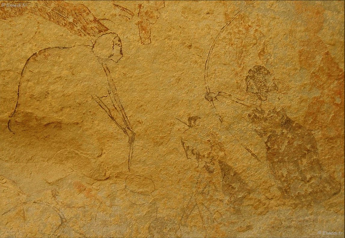 Ces peintures sont issues du Tassili des Adjers (Iheren-Tahilahi IV.), dans le Sahara :