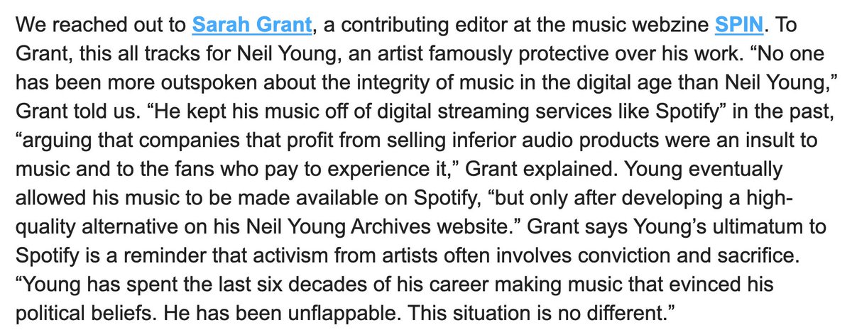 “[Neil] Young has spent the last six decades of his career making music that evinced his political beliefs. He has been unflappable. This situation is no different.”
